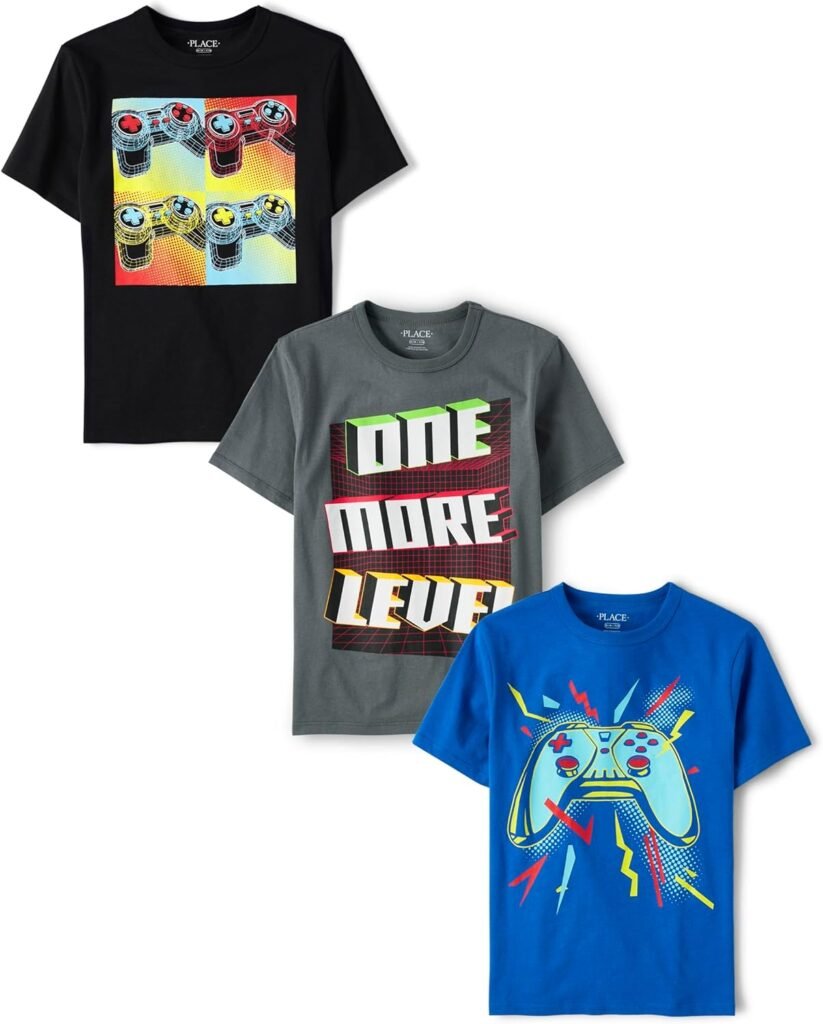 The Children’s Place Boys’ Gamer Short Sleeve Graphic T-Shirts, Multipack
