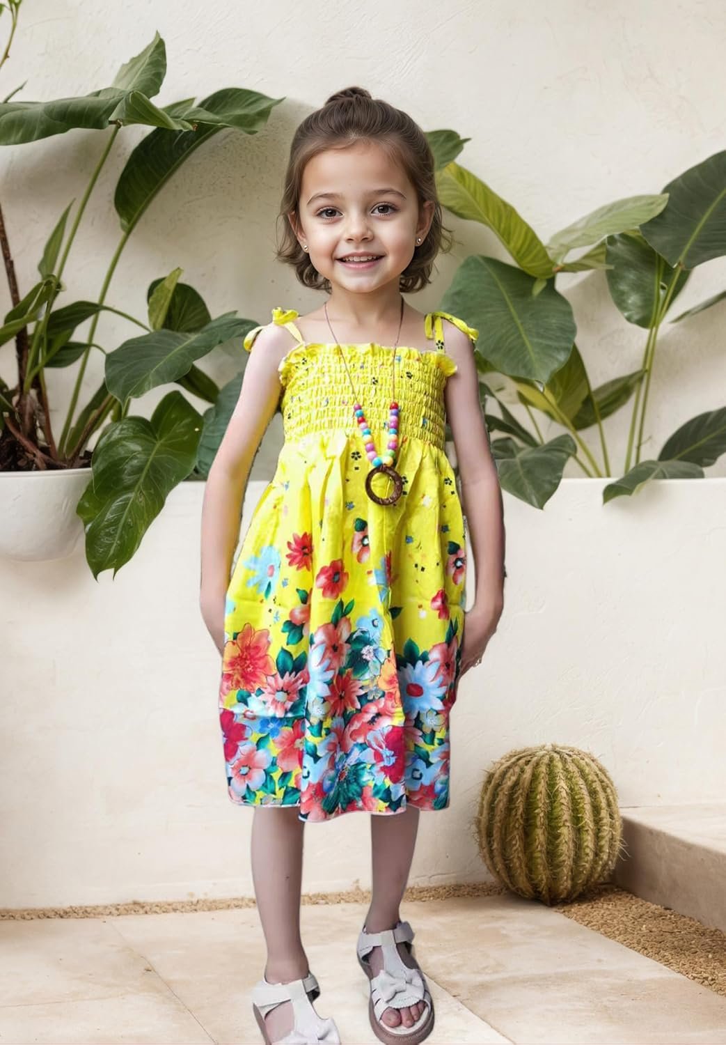 High-quality cotton fabric, soft, comfortable, suitable for summerFlowy girls dress with necklaceWrinkled and elastic bust will not be too tight or too loose after wearingPerfect for casual wear, summer beach, vacation, party